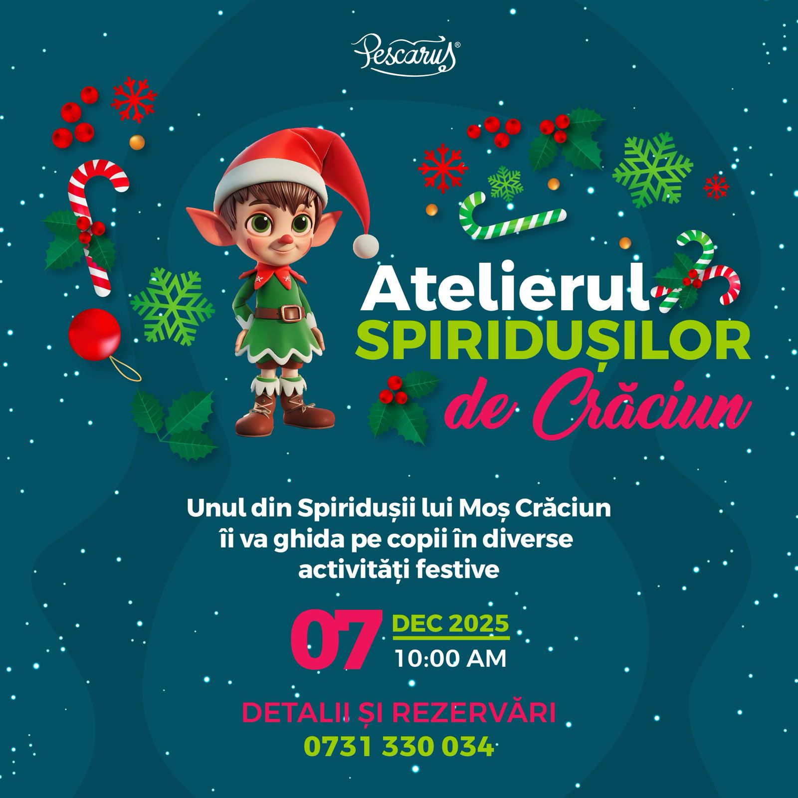 Duminică, 7 decembrie, de la ora 10:00, îi așteptăm pe cei mici la un atelier creativ în care imaginația prinde viață. Un spiriduș al lui Moș Crăciun îi va ghida în activități festive: atelier de creație cu materiale tematice, pictură pe față, modelaj de baloane, jocuri, concursuri, dansuri și momente pline de energie.